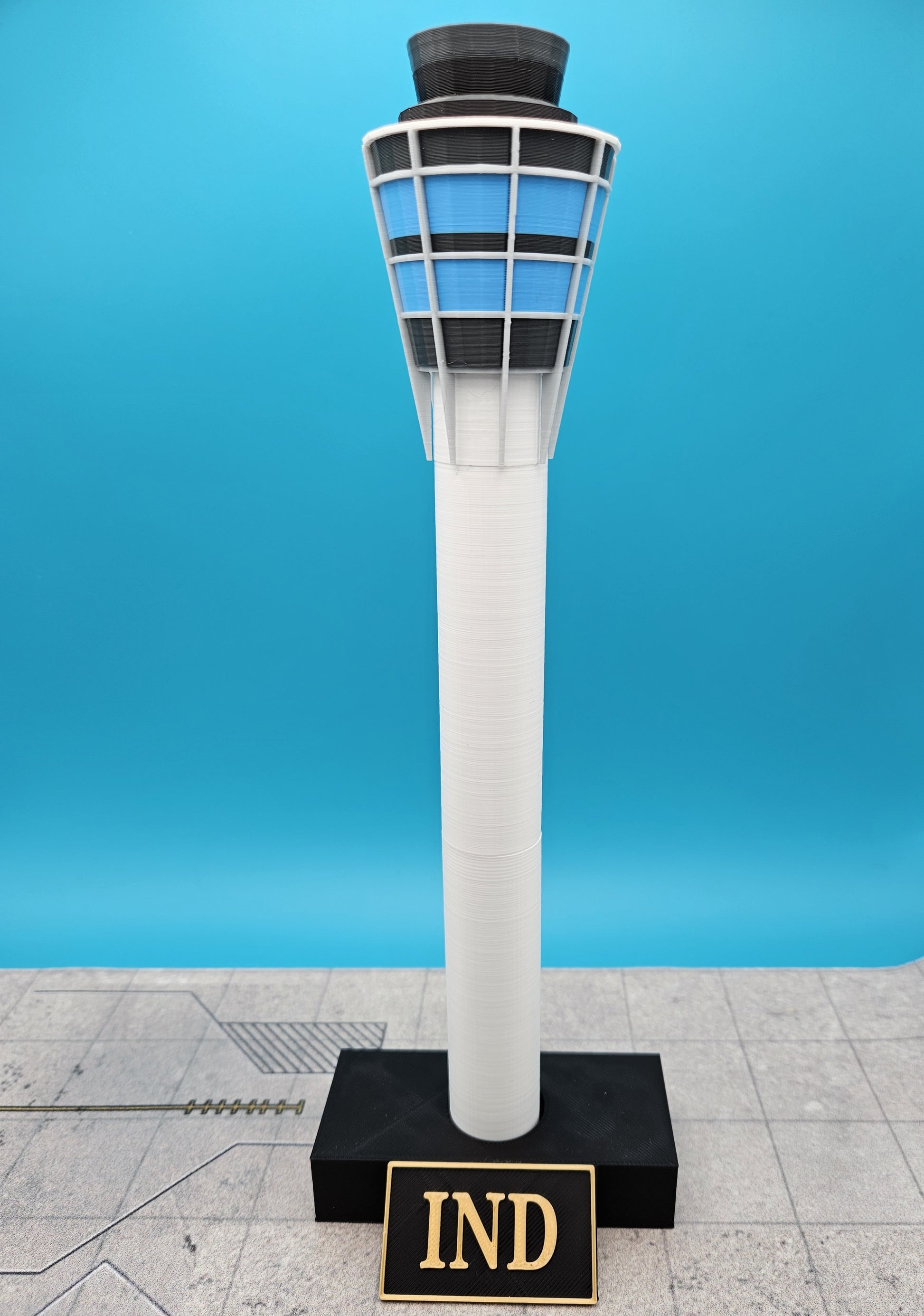 Experience the iconic architecture of Indianapolis International Airport's Air Traffic Control (ATC) Tower with our meticulously crafted 3D-printed model. This model captures the essence and grandeur of the original tower, which stands at an impressive 348 feet tall in Indianapolis, Indiana (IND). Perfect for aviation enthusiasts, collectors, and industry professionals, it is a striking addition to any collection.
