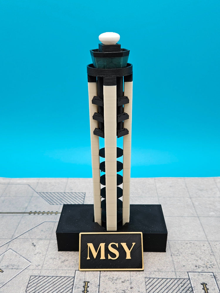 Add a distinctive piece of New Orleans aviation to your collection with this 3D-printed model of the Air Traffic Control Tower at Louis Armstrong New Orleans International Airport (MSY). Standing at 217 feet, the MSY tower is a modern, streamlined structure that serves as the visual and operational centerpiece of one of the Gulf Coast’s busiest airports.