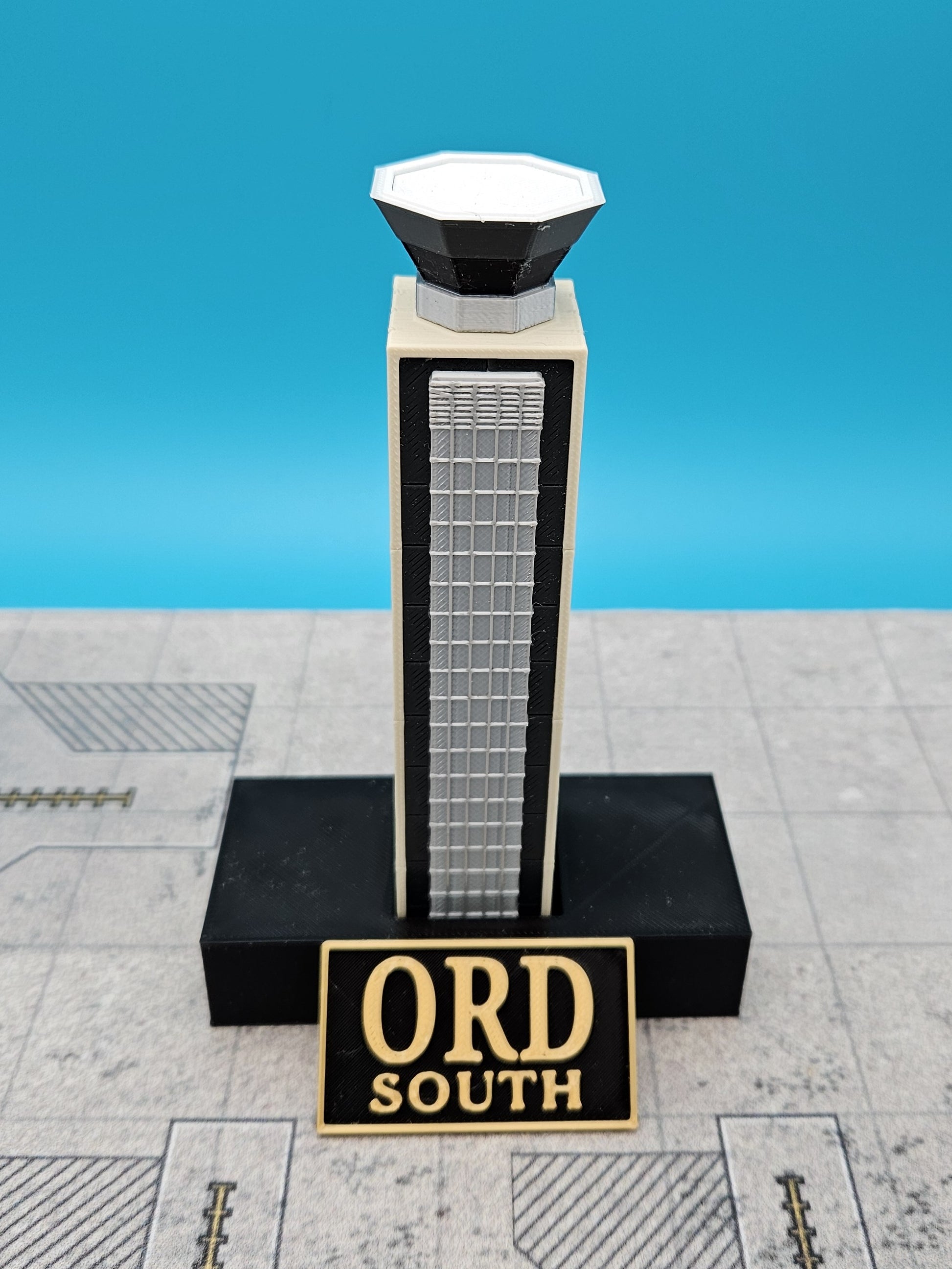 Immerse yourself in the iconic architecture of Chicago O'Hare International Airport's South Air Traffic Control (ATC) Tower with our intricately designed 3D-printed model. This detailed replica captures the essence and functional presence of the original, which stands at 215 feet tall in Chicago, Illinois (ORD). Perfect for aviation enthusiasts, collectors, and industry professionals, it makes a distinctive addition to any display or collection.